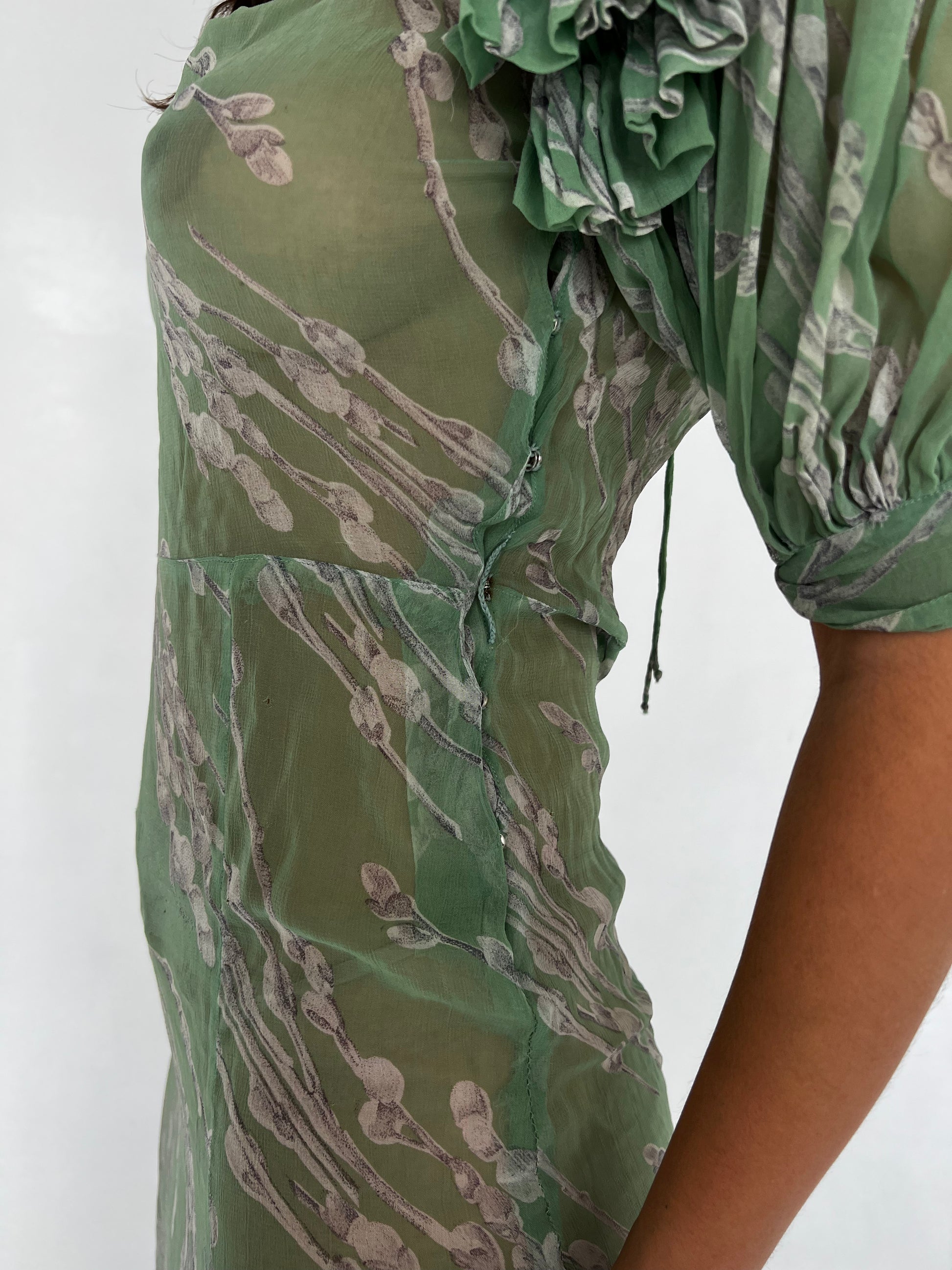 Beautiful ruffle sleeve detailing with side snap enclosure